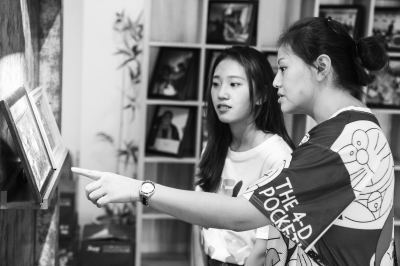6月27日,佘娅(左)在贵阳诚善助老慈善公益服务中心内与同事一起讨论工作细节。