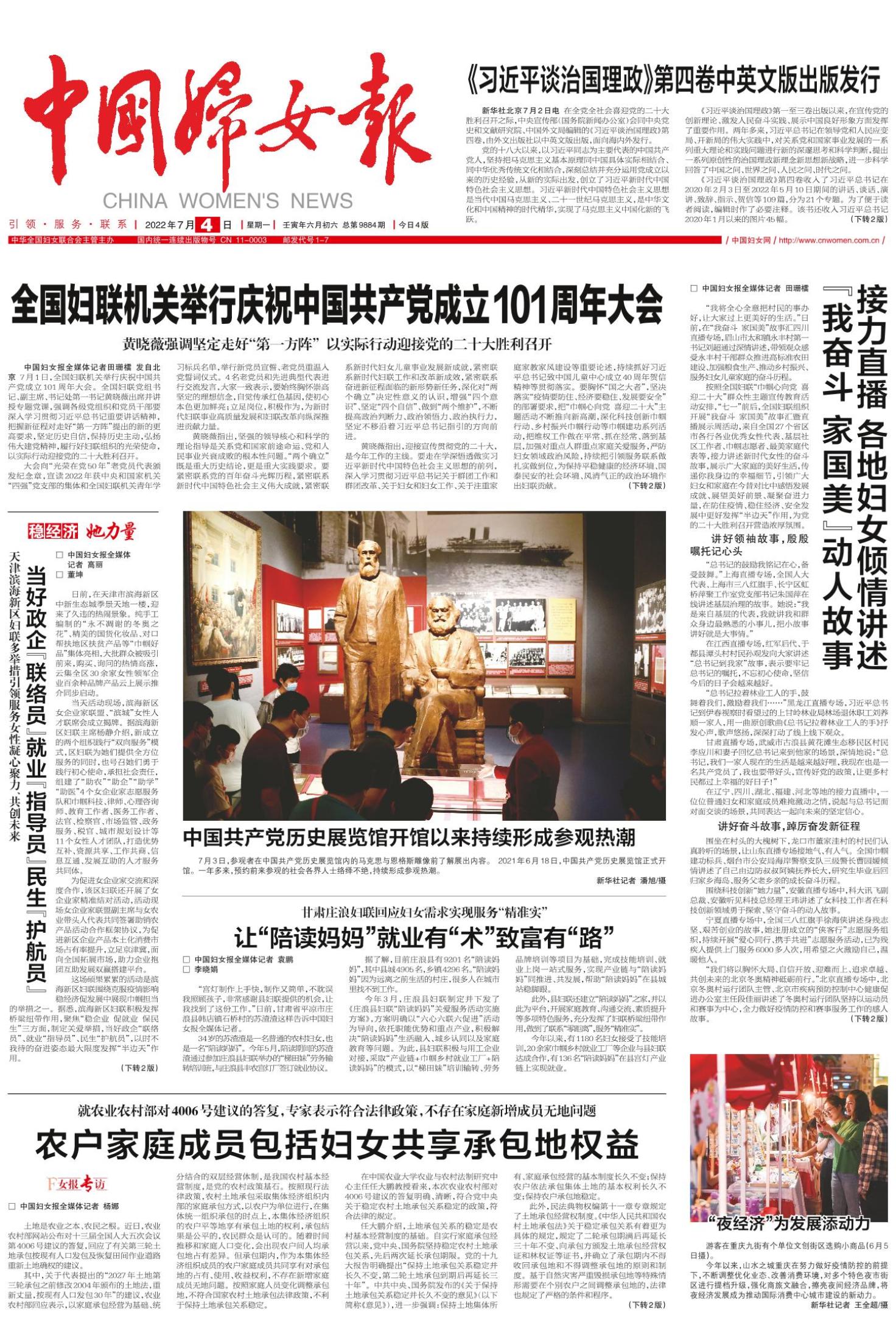 《中国妇女报》(电子版)的一切内容(包括但不限于文字、图片、PDF、图表、标志、标识、商标、版面设计、专栏目录与名称、内容分类标准以及为读者提供的任何信息)仅供中国妇女报读者阅读、学习研究使用,未经中国妇女报及/或相关权利人书面授权,任何单位及个人不得将《中国妇女报》(电子版)所登载、发布的内容用于商业性目的,包括但不限于转载、复制、发行、制作光盘、数据库、触摸展示等行为方式,或将之在非本站所属的服务器上作镜像。否则,中国妇女报将采取包括但不限于网上公示、向有关部门举报、诉讼等一切合法手段,追究侵权者的法律责任。