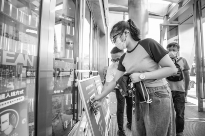 7月4日,在重庆两江新区一购物公园内,顾客使用NFC功能完成入场登记。    当日,NFC防疫登记功能在重庆试点上线。用户只需将开启NFC功能的手机,亮屏靠近场所码线圈,手机自动读取NFC标签,快速唤起场所码/健康码页面后,完成快速展码。该功能通过“贴一贴”完成登记,提高了疫情防控登记、展码的效率。    新华社记者 黄伟/摄
