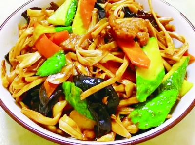 新鲜的黄花菜,焯水后做鸡蛋汤,口感清新嫩滑,唇齿间会留存花朵的清香。更多时候,人们喜欢将黄花菜晒干后,用来炒肉丝,或搭配点木耳、猪肉热乎乎地炖上一砂锅,荤素结合,香而不腻,口感滑爽。