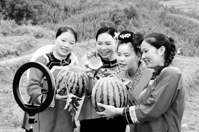 7月20日,在贵州省黔东南苗族侗族自治州榕江县平江镇当鸠村油茶套种西瓜基地,网络主播线上销售林带西瓜。当鸠村充分利用资源优势,并以“党支部+合作社+农户”模式,大力发展油茶种植产业,并通过套种西瓜、大豆、百香果等以短养长方式,提高土地使用效率,增加经济收入。目前,油茶带面套种的西瓜进入采收季,网络主播利用新媒体工具帮助群众拓宽销售渠道。