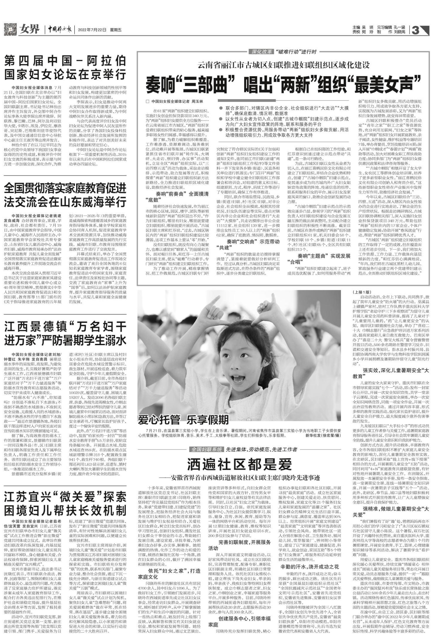 《中国妇女报》(电子版)的一切内容(包括但不限于文字、图片、PDF、图表、标志、标识、商标、版面设计、专栏目录与名称、内容分类标准以及为读者提供的任何信息)仅供中国妇女报读者阅读、学习研究使用,未经中国妇女报及/或相关权利人书面授权,任何单位及个人不得将《中国妇女报》(电子版)所登载、发布的内容用于商业性目的,包括但不限于转载、复制、发行、制作光盘、数据库、触摸展示等行为方式,或将之在非本站所属的服务器上作镜像。否则,中国妇女报将采取包括但不限于网上公示、向有关部门举报、诉讼等一切合法手段,追究侵权者的法律责任。