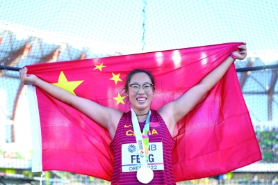 “非常开心,非常激动。”身披国旗在尤金的海沃德田径场庆祝完胜利后,冯彬爽朗地笑道。
