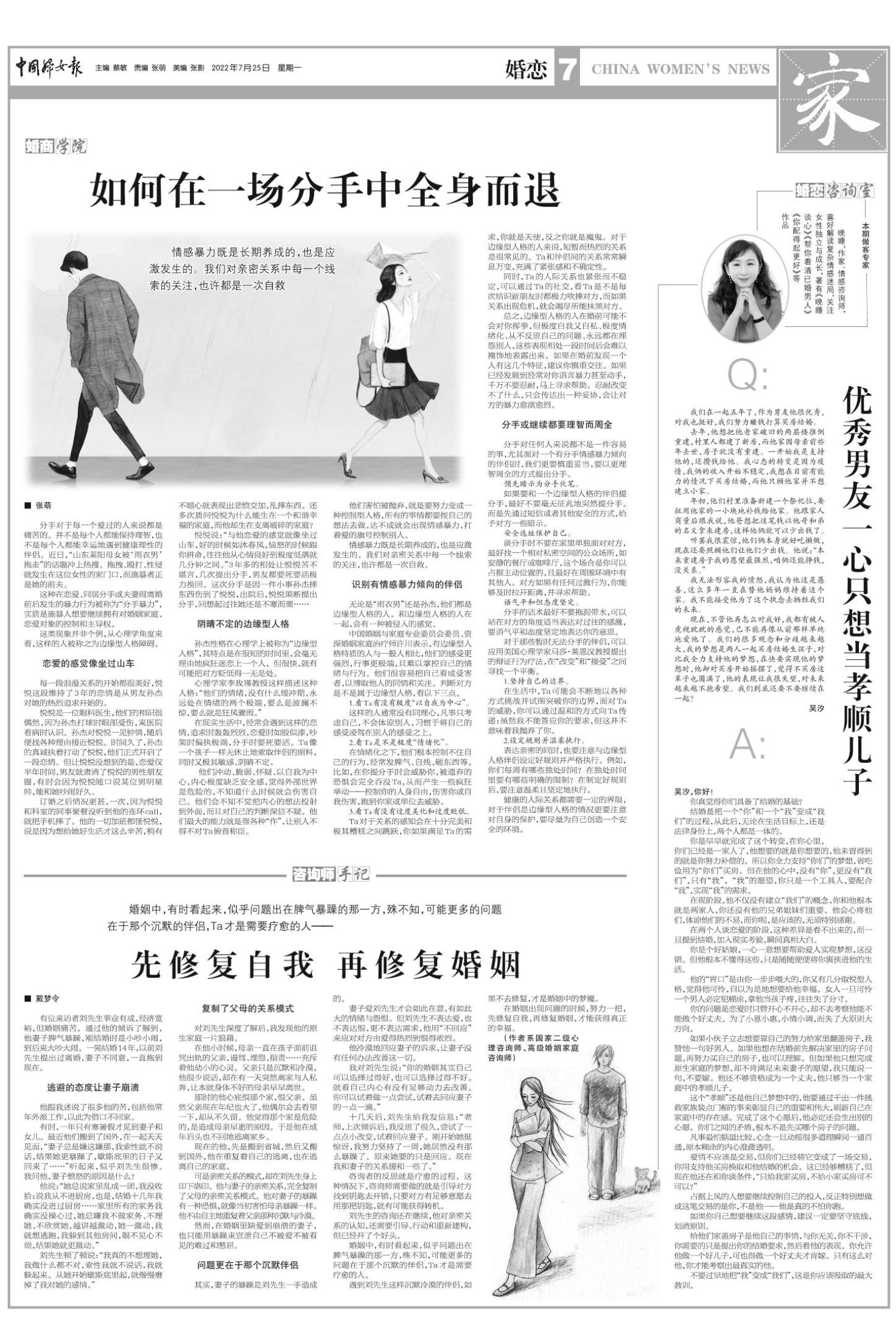 《中国妇女报》(电子版)的一切内容(包括但不限于文字、图片、PDF、图表、标志、标识、商标、版面设计、专栏目录与名称、内容分类标准以及为读者提供的任何信息)仅供中国妇女报读者阅读、学习研究使用,未经中国妇女报及/或相关权利人书面授权,任何单位及个人不得将《中国妇女报》(电子版)所登载、发布的内容用于商业性目的,包括但不限于转载、复制、发行、制作光盘、数据库、触摸展示等行为方式,或将之在非本站所属的服务器上作镜像。否则,中国妇女报将采取包括但不限于网上公示、向有关部门举报、诉讼等一切合法手段,追究侵权者的法律责任。