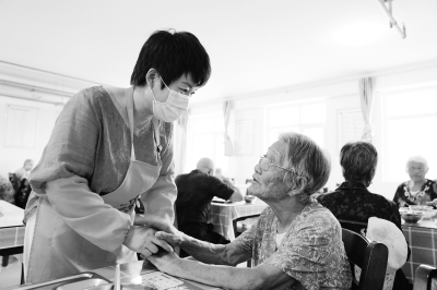 7月29日,山东省桓台县马桥镇前金村“长者食堂”的工作人员在询问老人饮食需求情况。 山东省桓台县自2021年起积极推进农村“长者食堂”建设,目前已实现所有村(社区)全覆盖。“长者食堂”实行“老人交一点、村里补一点、爱心人士帮一点、政府扶一点”的可持续运行机制,并根据老年人营养需求和时令变化营养配餐,让老年人既“吃得上”又“吃得好”。 新华社记者 郭绪雷/摄