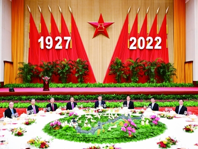 在喜庆欢快的乐曲声中,中外宾朋举杯共贺中国人民解放军建军95周年,祝福中国繁荣昌盛,祝愿中国人民解放军同世界各国军队友谊长青。