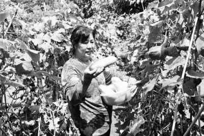 从果园回到屋子里,杨桂伶又麻利地提着装满野生苋菜、小黄瓜、番茄等的菜篮子走入厨房,准备午饭。当记者问道,照顾园子三十多年,有没有感到过厌倦时,她动情地说,几十年来练就的本领就是会干农活儿,“农民没有了土地就没有了主心骨,等我七老八十了或许考虑把园子交给别人,能干就还要坚持下去!”