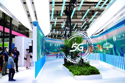 8月10日,人们在中国广播电视网络集团有限公司展区参观。 当日,2022世界5G大会在黑龙江省哈尔滨市开幕。大会以“筑5G生态,促共创共利”为主题,旨在汇聚世界5G发展的最新成果,为构建全方位、多领域、深层次的全球科技和产业合作体系描绘蓝图。新华社记者 张涛/摄