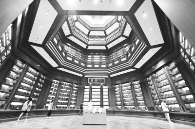 步入馆厅,映入眼帘的是“真理之光——马克思主义中国化时代化经典版本展”“斯文在兹——中华古代文明版本展”“见证伟业——中华民族复兴版本展”以及“版本工艺”“中国邮票”“中国货币”等专题展览。文华堂国家书房的44个巨型书柜,3万余册传世经典彰显出华夏典藏的深厚功力,文瀚厅中《四库全书》《永乐大典》《古今图书集成》等原仿真影印本、精选古籍影印本和原雕版刷印本昭告着先贤智慧的浩瀚无垠。