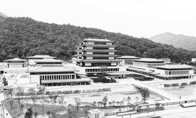 距离广州市中心城区大约90公里的从化区的凤凰山麓、流溪河畔,坐落着新时代广东的重要文化地标——国家版本馆广州分馆(广州国家版本馆)。该项目由中国工程院院士何镜堂团队负责设计,以“中华典藏、岭南山水、时代新韵、文明灯塔”为总体构思,建筑群整体布局依山就势,层次递进,传承中华传统礼轴形制,四周环绕人文与自然交融的岭南园林,打造传世经典的中华文化殿堂形象。