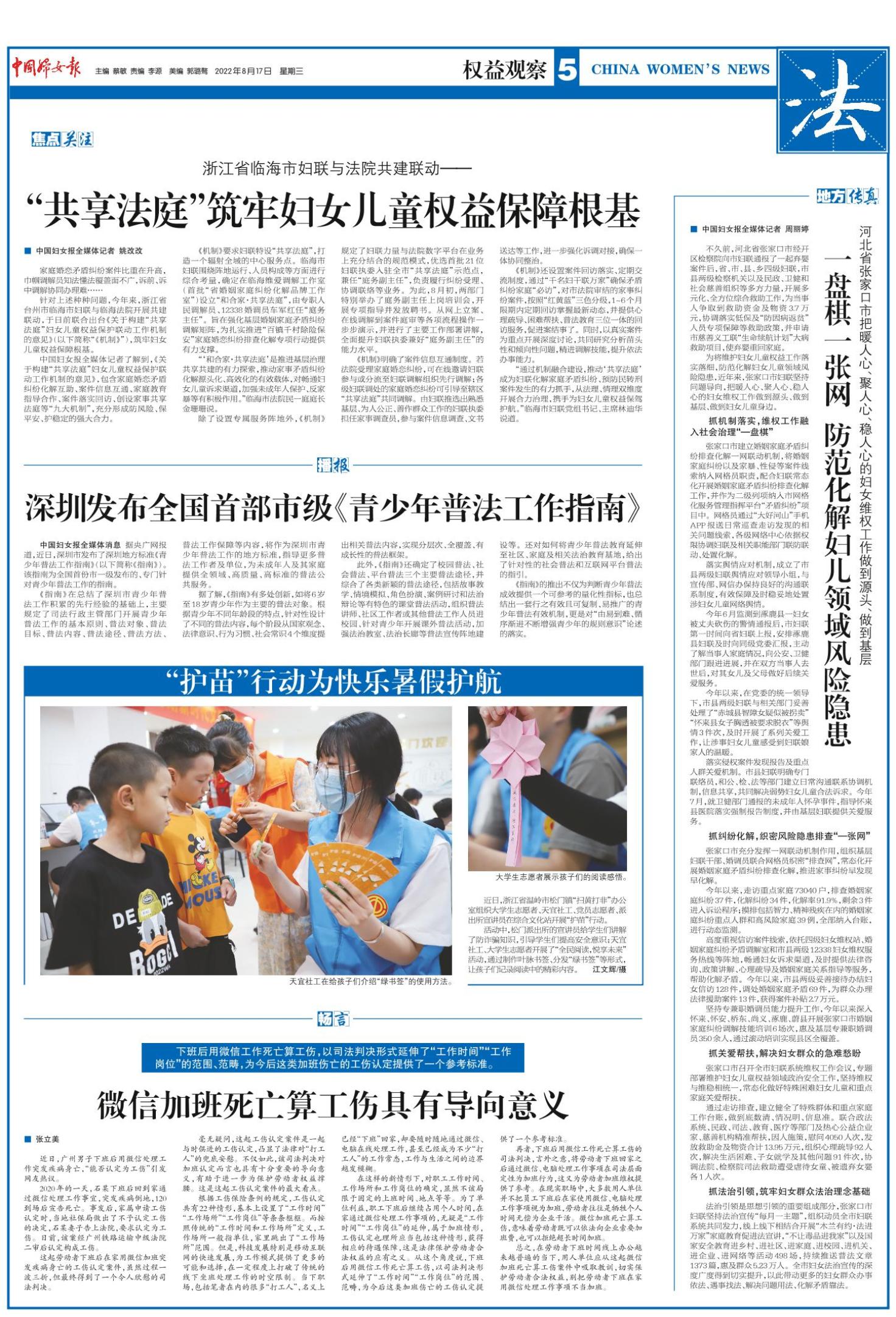 《中国妇女报》(电子版)的一切内容(包括但不限于文字、图片、PDF、图表、标志、标识、商标、版面设计、专栏目录与名称、内容分类标准以及为读者提供的任何信息)仅供中国妇女报读者阅读、学习研究使用,未经中国妇女报及/或相关权利人书面授权,任何单位及个人不得将《中国妇女报》(电子版)所登载、发布的内容用于商业性目的,包括但不限于转载、复制、发行、制作光盘、数据库、触摸展示等行为方式,或将之在非本站所属的服务器上作镜像。否则,中国妇女报将采取包括但不限于网上公示、向有关部门举报、诉讼等一切合法手段,追究侵权者的法律责任。