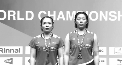 陈清晨/贾一凡在女双决赛中以22∶20、21∶14战胜韩国组合孔熙容/金昭映,继2017年和2021年后第三次赢得世锦赛冠军。