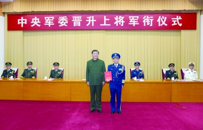 上午11时许,晋衔仪式在庄严的国歌声中开始。中央军委副主席许其亮宣读了中央军委主席习近平签署的晋升上将军衔命令。中央军委副主席张又侠主持晋衔仪式。
