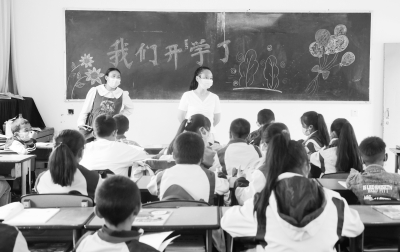 9月14日,老师在泸定县得妥镇中心小学上课。 9月14日,泸定县6所小学、幼儿园恢复线下上课,石棉县三个受灾乡镇学校也逐步复课。新华社记者 尹恒/摄