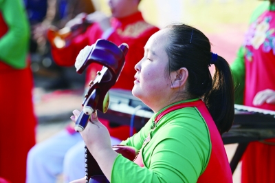上图为陵川县盲人曲艺宣传队队员在陵川县杨村镇泉头村演出。