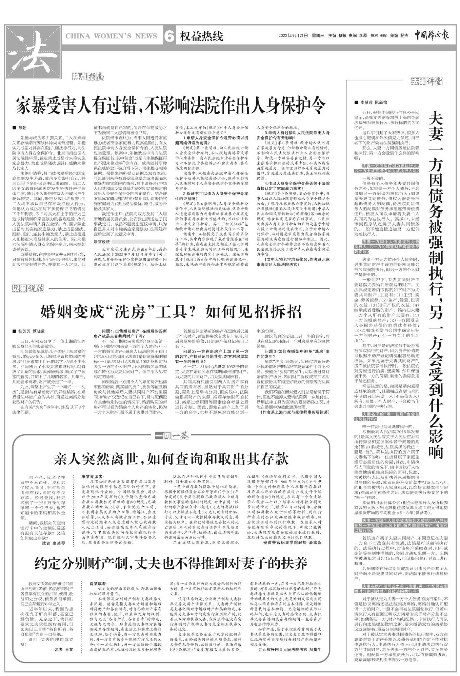 《中国妇女报》(电子版)的一切内容(包括但不限于文字、图片、PDF、图表、标志、标识、商标、版面设计、专栏目录与名称、内容分类标准以及为读者提供的任何信息)仅供中国妇女报读者阅读、学习研究使用,未经中国妇女报及/或相关权利人书面授权,任何单位及个人不得将《中国妇女报》(电子版)所登载、发布的内容用于商业性目的,包括但不限于转载、复制、发行、制作光盘、数据库、触摸展示等行为方式,或将之在非本站所属的服务器上作镜像。否则,中国妇女报将采取包括但不限于网上公示、向有关部门举报、诉讼等一切合法手段,追究侵权者的法律责任。