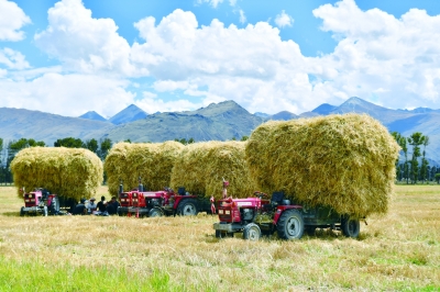 9月23日,秋分,我国将迎来第五个“中国农民丰收节”,西藏自治区拉萨市林周县的田间地头一片繁忙。据了解,林周县目前累计粮食收获面积为12.43万亩,已收获秋粮总产量预估6万吨,丰收在望。    新华社记者 觉果/摄