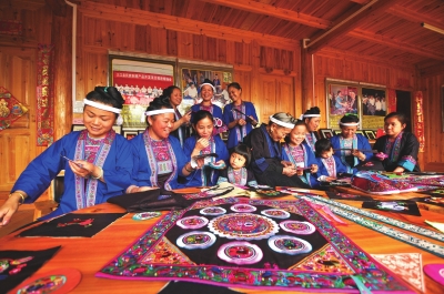 广西三江侗族自治县同乐乡发展刺绣让妇女居家就业。