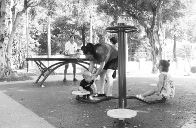 10月10日,在位于广州市花都区的紫兰口袋公园里,家长带着孩子玩耍。近年来,广州持续推动城市口袋公园建设,充分利用城市的边角地、闲置地实施“见缝插绿”,形成了一处处可供周边居民休闲、散步、健身及开展亲子活动的生态活力空间,构筑城市绿色新街景。    新华社记者 卢汉欣/摄