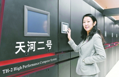 参与和见证中国超算发展过程的中山大学国家超算广州中心主任卢宇彤与“天河二号”。中新社发