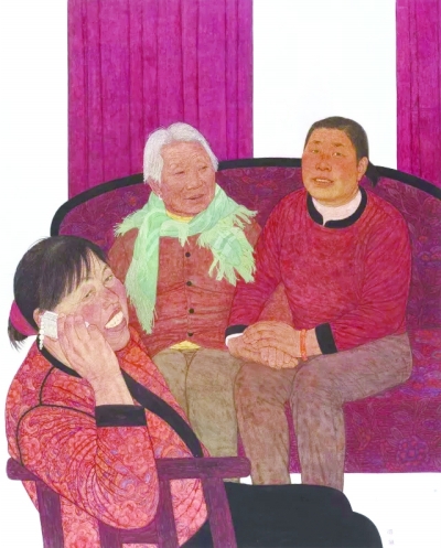 李传真,中国艺术研究院国画院副院长,一级美术师, 博士生导师,中国美术家协会会员,中国美协国家重大题材美术创作艺委会委员。她关注新生代农民工,也关注“80后”农民工的生存状态,以及他们与父辈们的精神面貌和家庭生活。她的作品中,主角都是普通人,她希望用画笔传达出他们真诚、淳朴、温暖的爱。时隔多年回到家乡,她用全新的视角展现了老伴之间、祖孙之间、乡邻之间的日常生活场景,记录了一个个动人瞬间。