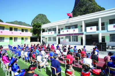 在马山县城定居的潘晓梅姐姐潘晓红也起了个大早,匆匆赶回古棠小学,“抢占”了集中收看的前排座椅。