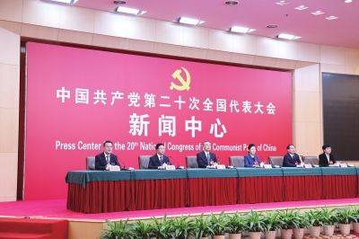 10月19日,中国共产党第二十次全国代表大会新闻中心举行记者招待会。中央政法委副秘书长訚柏,最高人民法院党组副书记、分管日常工作的副院长、一级大法官贺荣,最高人民检察院党组副书记、分管日常工作的副检察长、一级大检察官童建明,公安部党委委员、副部长、国家移民管理局党组书记、局长许甘露,司法部党组成员、副部长左力围绕“坚持以习近平法治思想为指引 努力建设更高水平的法治中国”主题与记者交流。