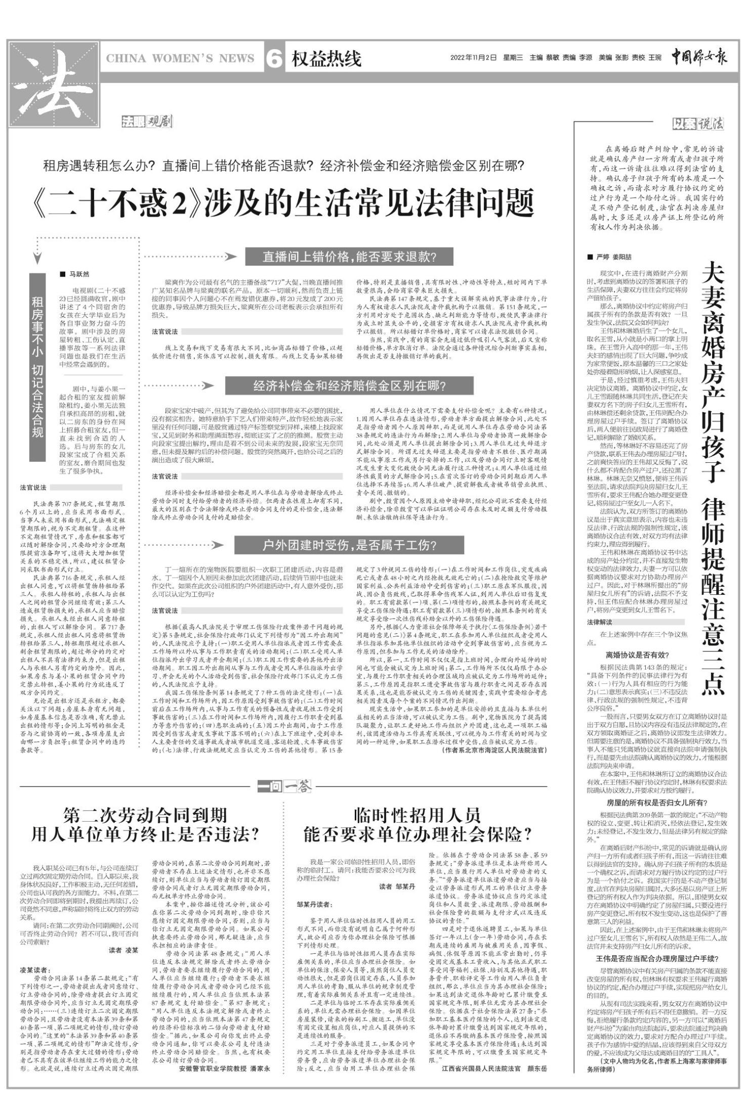 《中国妇女报》(电子版)的一切内容(包括但不限于文字、图片、PDF、图表、标志、标识、商标、版面设计、专栏目录与名称、内容分类标准以及为读者提供的任何信息)仅供中国妇女报读者阅读、学习研究使用,未经中国妇女报及/或相关权利人书面授权,任何单位及个人不得将《中国妇女报》(电子版)所登载、发布的内容用于商业性目的,包括但不限于转载、复制、发行、制作光盘、数据库、触摸展示等行为方式,或将之在非本站所属的服务器上作镜像。否则,中国妇女报将采取包括但不限于网上公示、向有关部门举报、诉讼等一切合法手段,追究侵权者的法律责任。