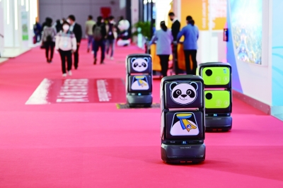 在进博会消费品展区,不同职能的多台机器人在展馆内各司其职,通过STATION机器人智慧服务站进行引领游客逛展、安防巡检和环保各功能切换,通过机器人调度平台和驾驶舱对机器人服务队进行“集合”“换班”和“调岗”。中国妇女报全媒体记者 杨睿/摄