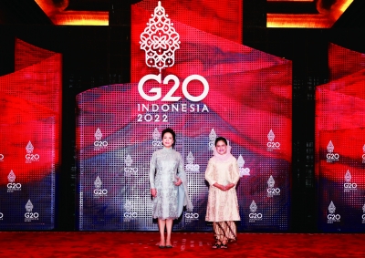 当地时间11月16日下午,国家主席习近平夫人彭丽媛在巴厘岛会见印度尼西亚总统夫人伊莉亚娜。 新华社记者 丁林/摄
