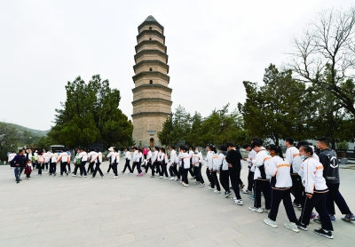 10月27日上午,金色的阳光洒满杨家岭。苍柏青翠,庄严肃穆,怀着崇高的敬仰之情,漫步于见证中国革命的旧址之中,使人恍然置身于那个火热的革命浪潮之中——全体军民团结一致,艰苦奋斗,自力更生,以饱满的革命热情和过硬的延安作风共同缔造着永放光芒的延安精神。