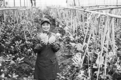 11月29日,在赤松镇北山口村的俊皓家庭农场,种植户杜娟俏展示两个用于电商销售的精品佛手。今年她种植的佛手预计销售额可以达9万元。    浙江省金华市金东区有着600多年的佛手种植历史,素有“中国佛手之乡”的美誉。金东区现有佛手种植面积3000多亩,主要集中在赤松镇北山口村。从2022年开始,在当地政府的引导下,北山口村佛手产业正发生着多重转变。佛手销售从卖黄果转变为开始销售青果;销售渠道从路边摊变为线上电商、直播销售;产业结构从发展单一的佛手种植变为文旅融合。此外,佛手果酱、佛手茶以及佛手茶歇点心等衍生产品开始进入市场。传统佛手产业的转型升级让村民们的收入不断增加,佛手成为助力当地乡村振兴的“致富果”。    新华社记者 徐昱/摄