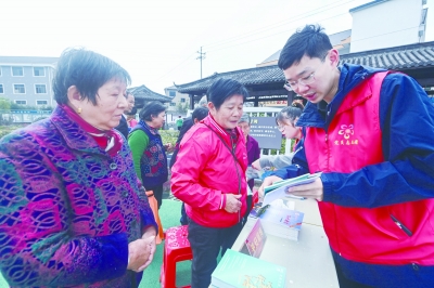 11月9日,在杭州市临安区太阳镇上太阳村,党员志愿者向群众发放法律相关宣传资料。    当日,浙江省杭州市临安区太阳镇举行“法律服务到村口”活动,发放宣传手册,解答群众法律咨询。近年来,临安区太阳镇通过定期开展法治宣传教育进乡村活动、开设“司法援助诊所”、建立“共享法庭”、聘用“乡贤评理员”等渠道开展司法援助,通过“线上+线下”的方式化解矛盾纠纷,深入推动基层法治建设。    新华社记者 徐昱/摄