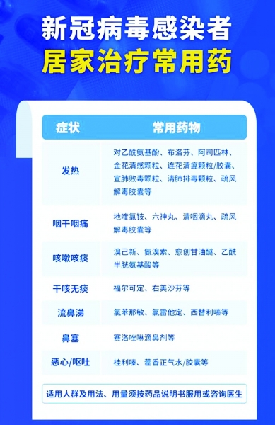 12月8日,国务院联防联控机制发布了《新冠病毒感染者居家治疗指南》,并附以《新冠病毒感染者居家治疗常用药参考表》,依据发热、咽干咽痛等7种症状列出了常用药物,连花清瘟颗粒/胶囊、布洛芬、阿司匹林均被列入参考表。