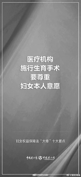 新妇女权益保障法第21条增设:“禁止进行非医学需要的胎儿性别鉴定和选择性别的人工终止妊娠”。以保护胎儿特别是女性胎儿的生命权。增设“医疗机构施行生育手术、特殊检查或者特殊治疗时,应当征得妇女本人同意;在妇女与其家属或者关系人意见不一致时,应当尊重妇女本人意愿”。妇女有权支配自己的身体组织,决定是否施行生育手术、特殊检查或者特殊治疗,比如是否通过剖宫产手术生育子女。因此,医疗机构在做此类手术或治疗时,应当首先征得妇女本人同意,在妇女与其家属或者关系人意见不一致时,也应当尊重妇女本人意愿,而不能听从其家属或者关系人的意见,以保护妇女的健康权和身体权。