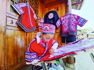 “无声巧妇”带领着越来越多的姐妹们走上致富路。不仅如此,近年来,台江县还立足当地丰富的非物质文化遗产,大力实施非遗文化人才“传承工程”,发掘和培养民间刺绣、剪纸、蜡染、银饰等各种非遗项目文化能人455人,充分发挥传承人的“传帮带”作用,将苗乡群众的传统手艺变成增收致富的“法宝”。