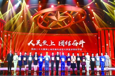 上海市总工会主办“人民至上,团结奋斗”党的二十大精神劳模先进党代表宣讲特别节目。十八位来自一线的劳模用亲身经历和真情实感畅叙心声,以各具特色的表演传递对党的二十大精神的深切感悟。