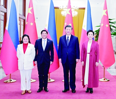 习近平欢迎马科斯就任菲律宾总统后首次访华。习近平指出,这是你首次正式访问东盟以外国家,你也是今年中方接待的首位外国领导人。这充分体现了中菲关系的密切程度,也说明双方在彼此外交格局中占有重要位置。中菲是一衣带水的近邻。在两国上千年交往史上,以诚相待、守望相助始终是中菲关系主流,也是两国人民共有的宝贵精神财富。48年前,你的父亲同中国老一辈领导人洞察时局、顺应大势,共同作出中菲建交的历史性决定。此后近半个世纪,无论国际风云和菲律宾国内政局如何变化,你和你的家族一本初衷,矢志推动中菲友好,这份情谊弥足珍贵。希望你这次访华不仅是一次“怀旧之旅”,更是一次“开创之旅”。中方始终把菲律宾放在周边外交优先方向,坚持从战略和全局高度看待中菲关系。我愿同你保持经常性战略沟通,全面规划双边关系下步发展,做互帮互助的好邻居、相知相近的好亲戚、合作共赢的好伙伴,为两国人民带来更多福祉,为地区和平稳定贡献更多正能量。