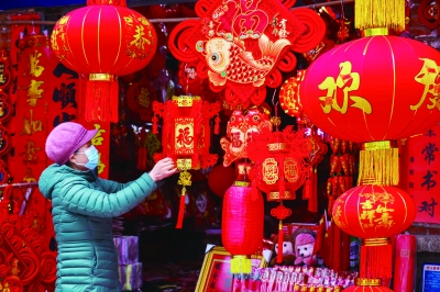1月5日,市民在河南省信阳市光山县一处市场内选购春节饰品。    春节临近,年味渐浓,河南省信阳市以“兔年”为主题的各种对联、年画、“福”字等饰品纷纷上架,成为市民抢手的热门商品。    新华社发 谢万柏/摄