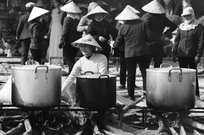 ② 1月7日,在越南河南省,一名女子在制作粽子迎新春的公益活动中煮粽子。 粽子是越南民众庆祝农历新年时必备的传统食品。