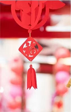 窗花、对联贴起来。过年怎能少了窗花、对联?它们凝聚了所有美好祝福,代表着最传统、最有味道的中国年。春节红火就要红得彻底,大红灯笼挂在门口、红色的中国结挂在玄关,正所谓“开门红”,既是主人对来年的期盼,同时也是对客人的新春祝福。此外,门上、窗上贴的红色福字、窗花,墙上挂的大红爆竹等,也表达着吉祥如意的美好祝愿。