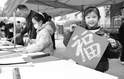 1月11日,安徽省合肥市蜀山区翠竹园社区开展“送春联 迎新年”活动,组织辖区书法爱好者现场书写春联,为居民送去兔年挂饰、窗花等,营造浓浓的传统年味。