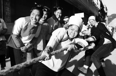 1月29日,在贵州省黔东南苗族侗族自治州榕江县定威乡定旦村,少数民族妇女参加拔河比赛。当日,为进一步丰富农村群众精神文化生活,榕江县定威乡党委、政府在定旦村组织开展“绽放巾帼风采 助推乡村振兴”农民女子趣味运动会,来自全乡各村的妇女代表参加了挑拣黄豆、捉鸡、拔河、挑米接力、跳绳等趣味性比赛活动,展现了农村妇女勤劳奋进、团结热情、乐观无私的巾帼风采。