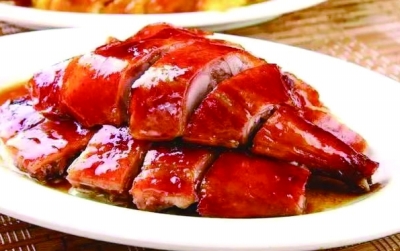 无论左腿还是右腿,都是鹅的下桩,动物脂肪多堆积在下半身,尤其是刚出炉的烧鹅,红彤彤的鹅皮下面鹅油金灿灿,鹅皮烧得薄脆,菱形纹路仿佛又给鹅提升了些许格调。鹅皮下鹅油晶莹剔透,汁水丰盈,肉质鲜美。鹅的胸肌也甚是发达,肉紧而不柴。若是喜欢啃骨头,则选上桩,咬开骨头,骨头的甘香带着汁水的咸香,食髓知味,甘之如饴。