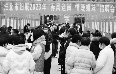 2月3日,安徽省淮北市妇联举办“春风送岗 情暖姐妹”妇女专场招聘会。招聘会共组织300家企业进场招聘,为女性求职人员提供家政服务业、纺织造业、财务管理、网络直播等岗位,吸引进场求职人员2000余人。