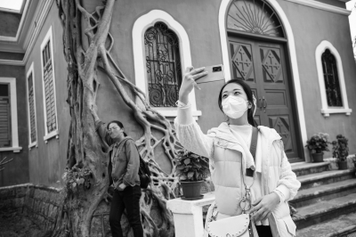 2月6日,广东省赴澳门首发团成员在游览时自拍。    当日,6个内地旅行团共135人抵达澳门,其中2个来自广东省、3个来自上海市及1个来自辽宁省。澳门特区政府旅游局在横琴口岸和澳门国际机场举行欢迎仪式,并向旅行团成员赠送澳门旅游纪念品。    新华社记者 张金加/摄