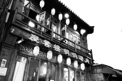 什刹海四岸的灯光明灭闪烁。