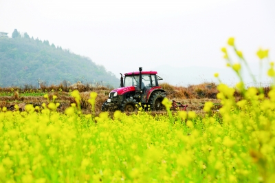 2月7日,贵州省黔南布依族苗族自治州龙里县湾滩河镇翠微村农民驾驶农机在田里翻耕土地。 早春时节,各地抢抓农时,开展备种备耕工作。 新华社发(龙毅/摄)
