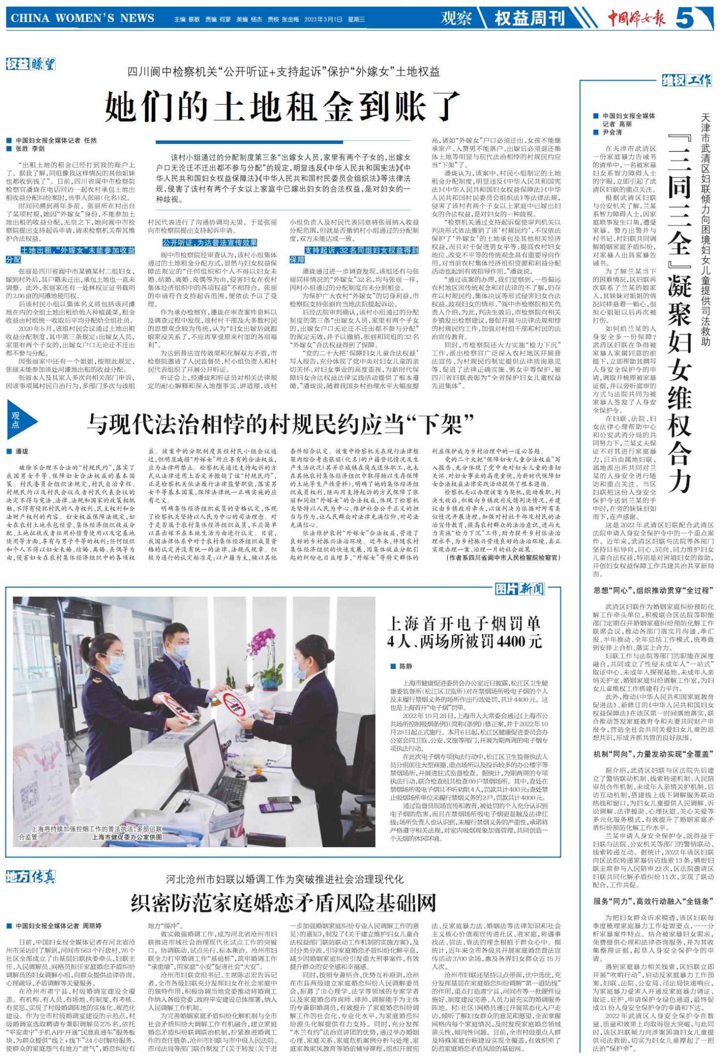 《中国妇女报》(电子版)的一切内容(包括但不限于文字、图片、PDF、图表、标志、标识、商标、版面设计、专栏目录与名称、内容分类标准以及为读者提供的任何信息)仅供中国妇女报读者阅读、学习研究使用,未经中国妇女报及/或相关权利人书面授权,任何单位及个人不得将《中国妇女报》(电子版)所登载、发布的内容用于商业性目的,包括但不限于转载、复制、发行、制作光盘、数据库、触摸展示等行为方式,或将之在非本站所属的服务器上作镜像。否则,中国妇女报将采取包括但不限于网上公示、向有关部门举报、诉讼等一切合法手段,追究侵权者的法律责任。