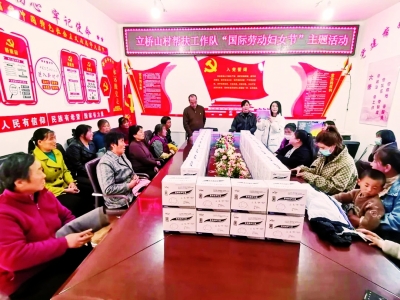 3月8日,在全国妇联定点帮扶县甘肃定西漳县,盐井镇立桥山村的驻村帮扶干部为村里的留守妇女们发放了由中国妇基会捐赠的N95医用防护口罩357盒,为16名留守妇女发放由省妇联、甘肃妇女儿童发展基金会捐赠的女性洗护用品三件套22套及爱心衣物38件,并现场讲解了女性健康知识。